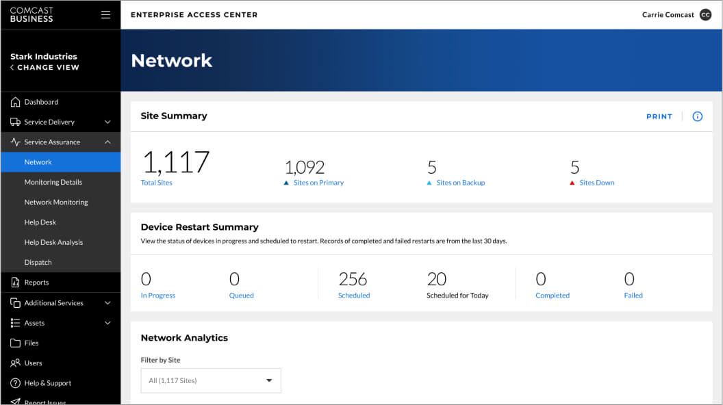 Enterprise business networks are large and often require complex and bespoke solutions, but with the self-service modem restart and help desk experiences, Comcast Business has taken complexity and wait time out of troubleshooting and network management.